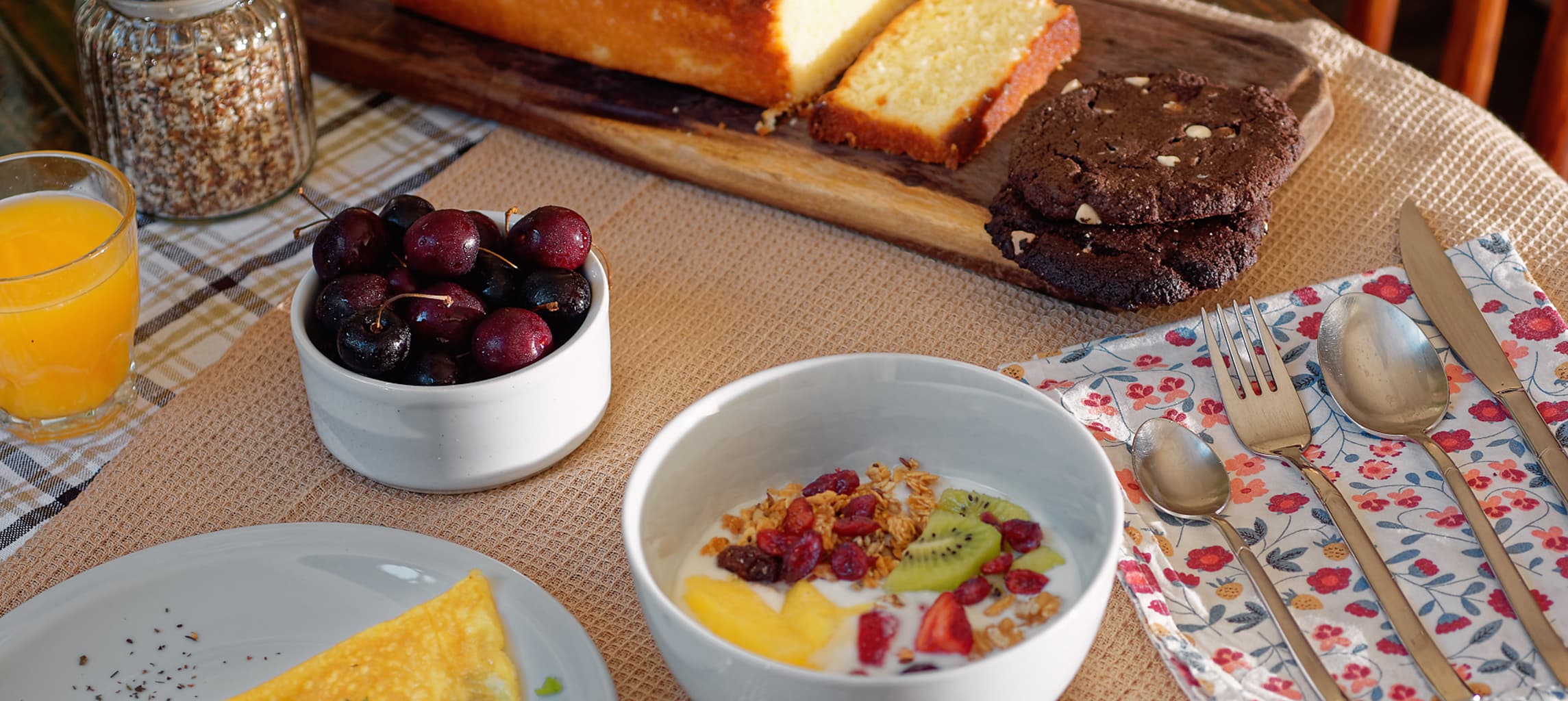 Servido na biblioteca até às 12h, completo e variado, convidando a momentos agradáveis em um ambiente charmoso.